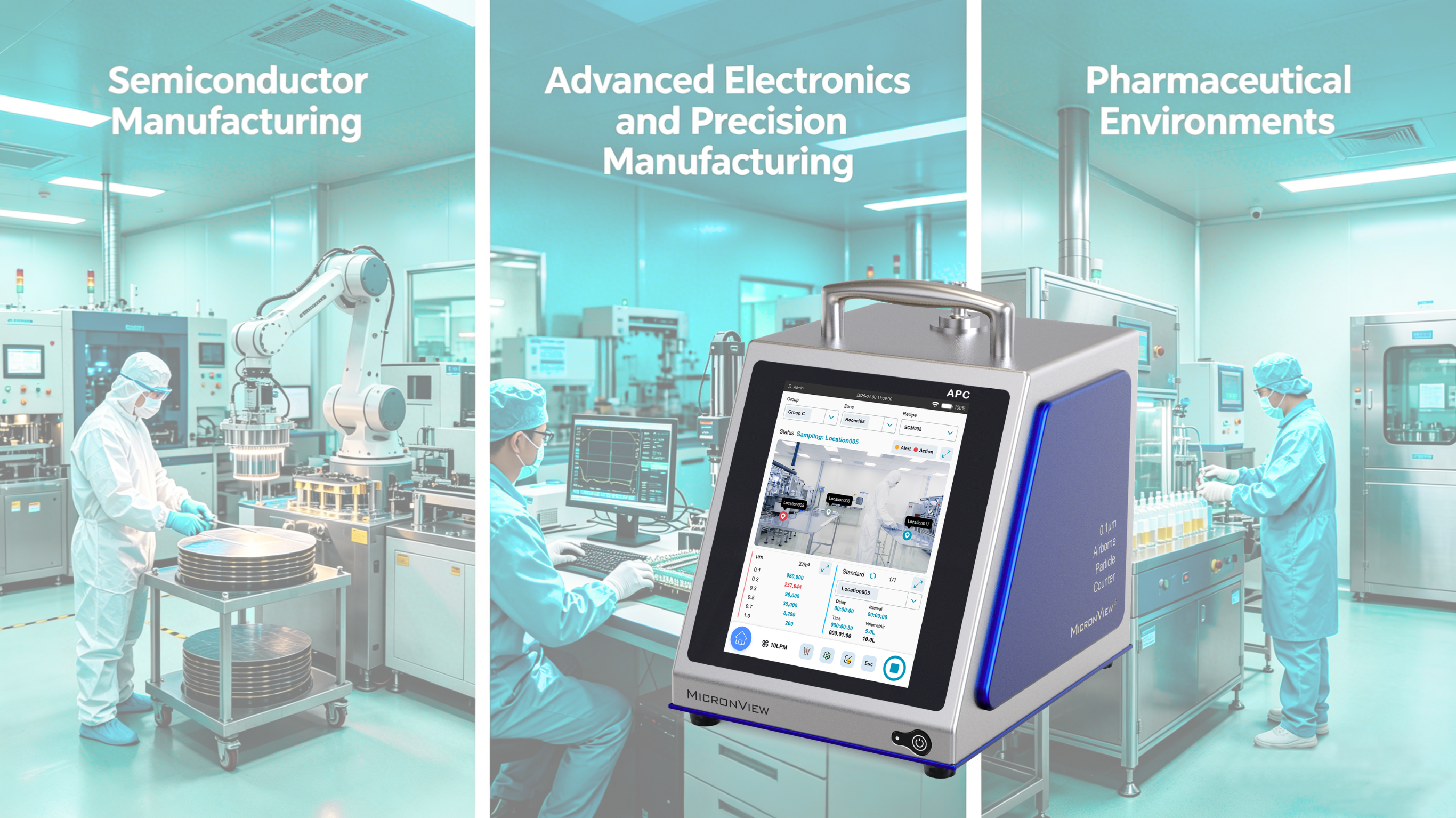 With both 10 LPM and 28.3 LPM configurations, structured sampling capabilities, and the option for full automation through the EMC Robot platform, MicronView's 0.1µm APC can be deployed in a way that aligns with existing monitoring strategies while providing a more complete dataset for environmental control and process optimization.